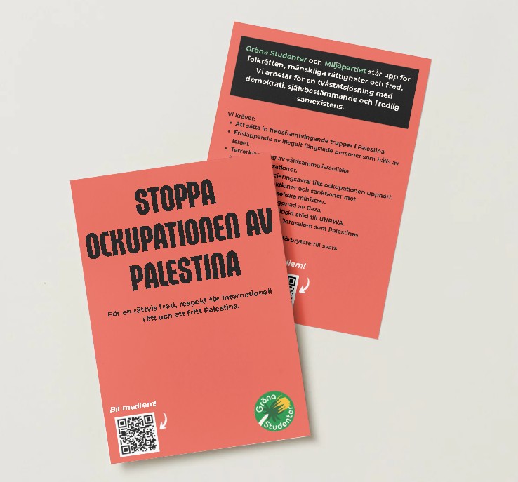 Läs foldern, sprid budskapet och engagera dig för fred, frihet och ett fritt Palestina.